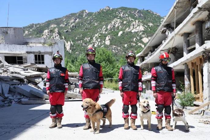 搜救犬现场技能展示 观摩国家救援队搜救犬的现场搜索演示。了解搜救犬在地震废墟中精准定位幸存者的训导方法及其在复杂灾害环境中的应用。