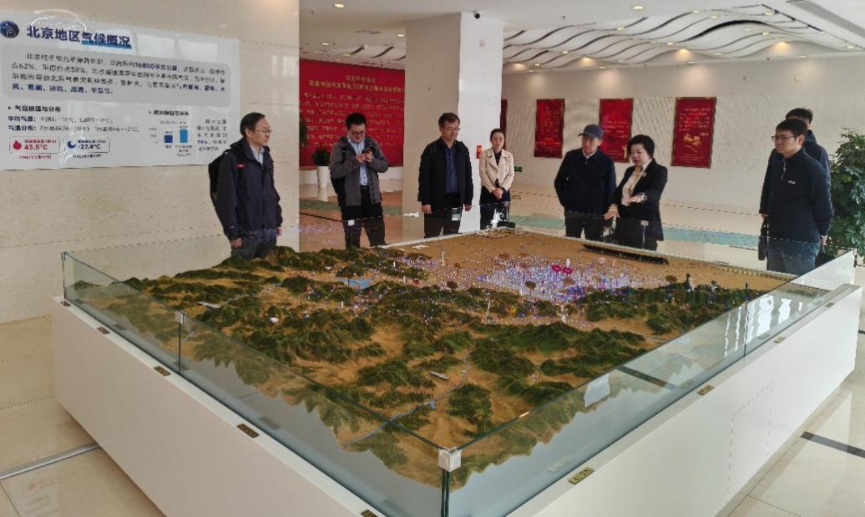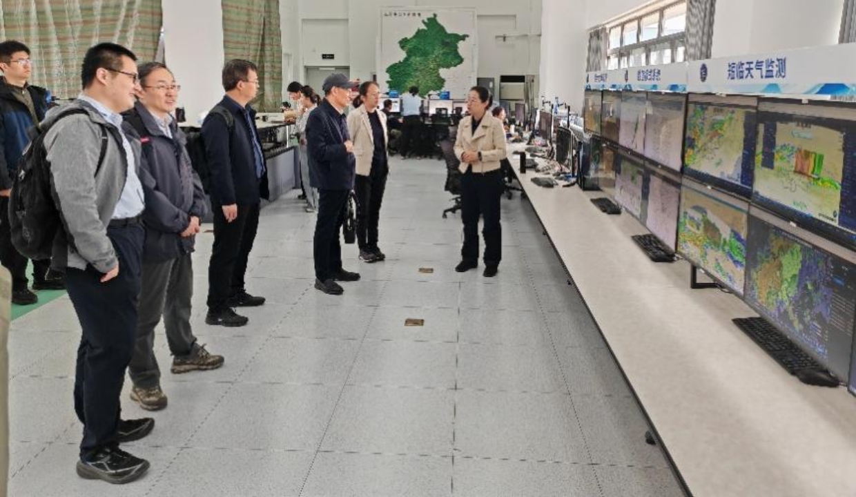 在北京市气象局一楼大厅,北京市气象局应急与减灾处处长付宗钰同志和北京市气象台副台长何娜同志首先详细介绍了市气象观测站网布设情况,指出北京市现有地面气象观测设备3347套、形成京津冀23套雷达观测组网产品,气象站网密度居全国第一。