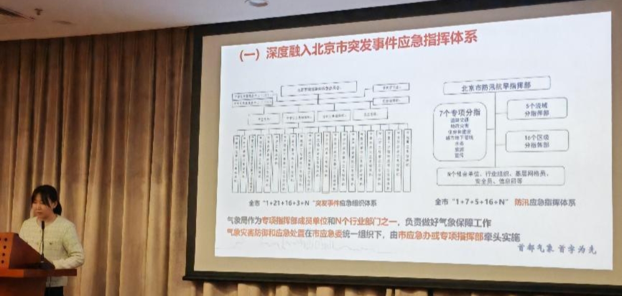 随后,调研人员到达七楼会商室。北京市气象台副台长何娜同志详细介绍了气象监测预警业务。北京市气象局自主研发的“睿图”系列区域模式已实现1小时快速循环同化,空间分辨率达3km、0–72小时时间分辨率达1小时,同化本地雷达、风廓线、加密探空等高价值资料,显著提升局地强对流(如“山区对流进城”“城区新生对流”)捕捉能力。
